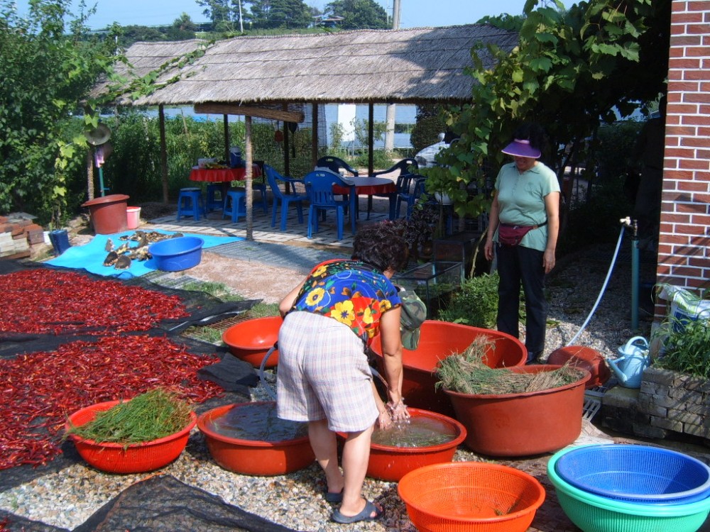 땀뻘뻘 흘리며 채집해온 함초.. 깨끗이 손질하는중